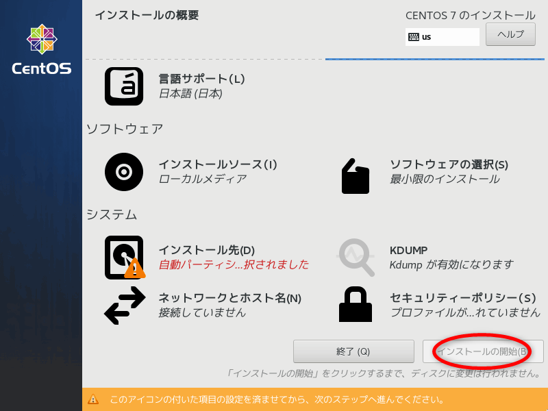 インストールの開始